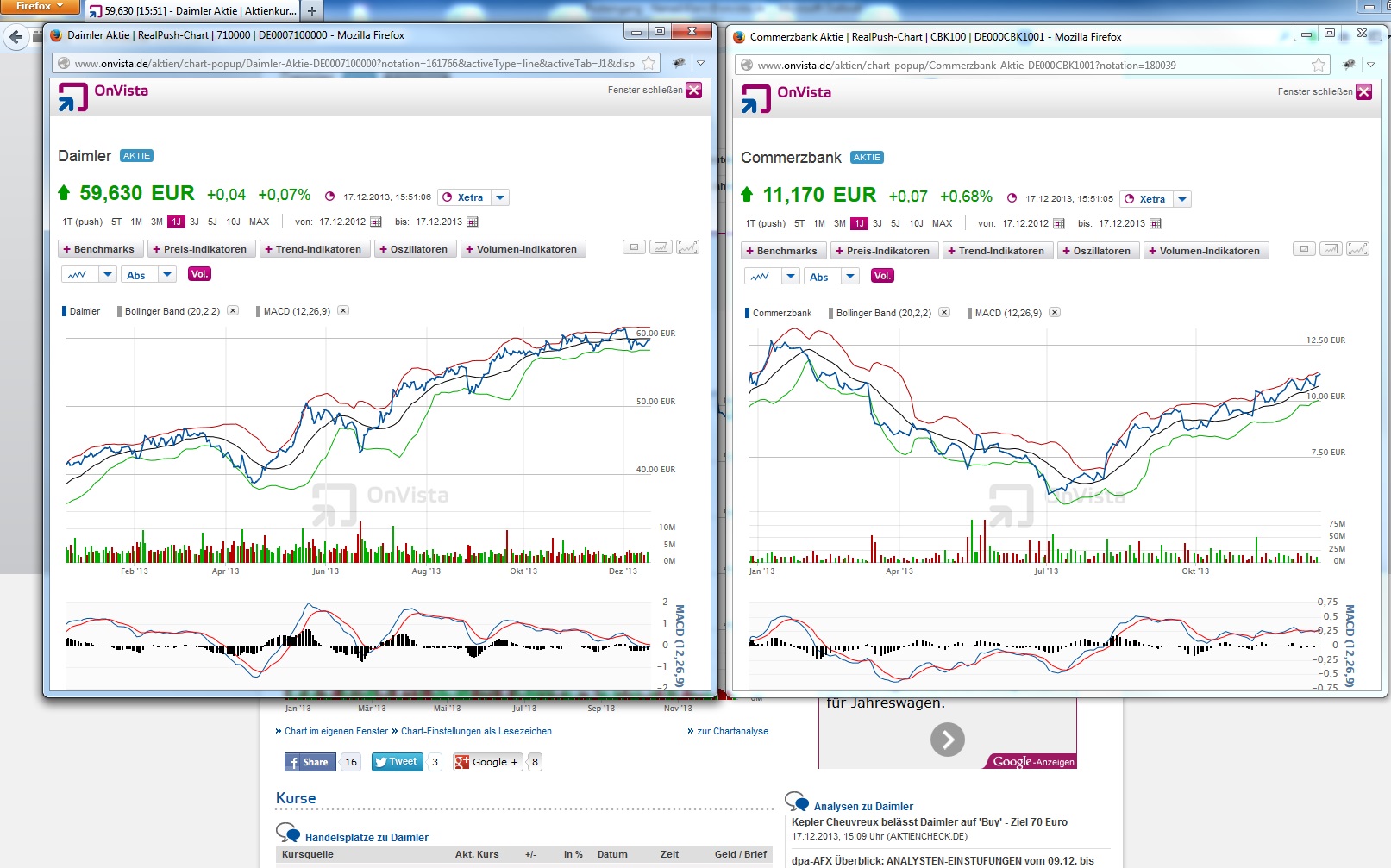 Die Möglichkeit den Chart aus einer Aktien-Übersicht in einem eigenen Fenster öffnen zu können und dadurch mehrere Charts auf einem Bildschirm anzeigen zu lassen besteht bereits seit einigen Monaten. Seit letzter Woche ist es nun auch möglich in diesen Fenstern Chartanalysen durchzuführen und diese miteinander zu vergleichen.
