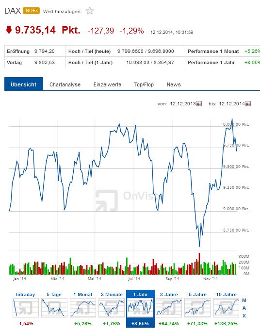 Die wichtigste Neuerung, die Ihnen sofort ins Auge fallen wird: der Chart ist deutlich größer geworden. Der neue Index-Chart gleicht nun den Aktien-Charts, die wir vor einiger Zeit bereits überarbeitet hatten. Damit bekommen die Charts auf OnVista künftig ein einheitliches Aussehen.